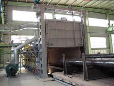臺(tái)車式退火爐鋼 結(jié)構(gòu)主要包括爐殼支撐框架和驅(qū)動(dòng)設(shè)備支撐框架(平臺(tái)鋼結(jié)構(gòu))。考慮到爐殼潛在的熱脹冷縮因素,各段爐殼支撐框架與平臺(tái)鋼結(jié)構(gòu)采川相互獨(dú)立結(jié)構(gòu)。各爐段的底 輥室先安裝就位,以自己四角立柱為基準(zhǔn)完成4個(gè)基準(zhǔn)立柱焊接;再焊接左右兩個(gè)整體端板.而操作側(cè)和傳..